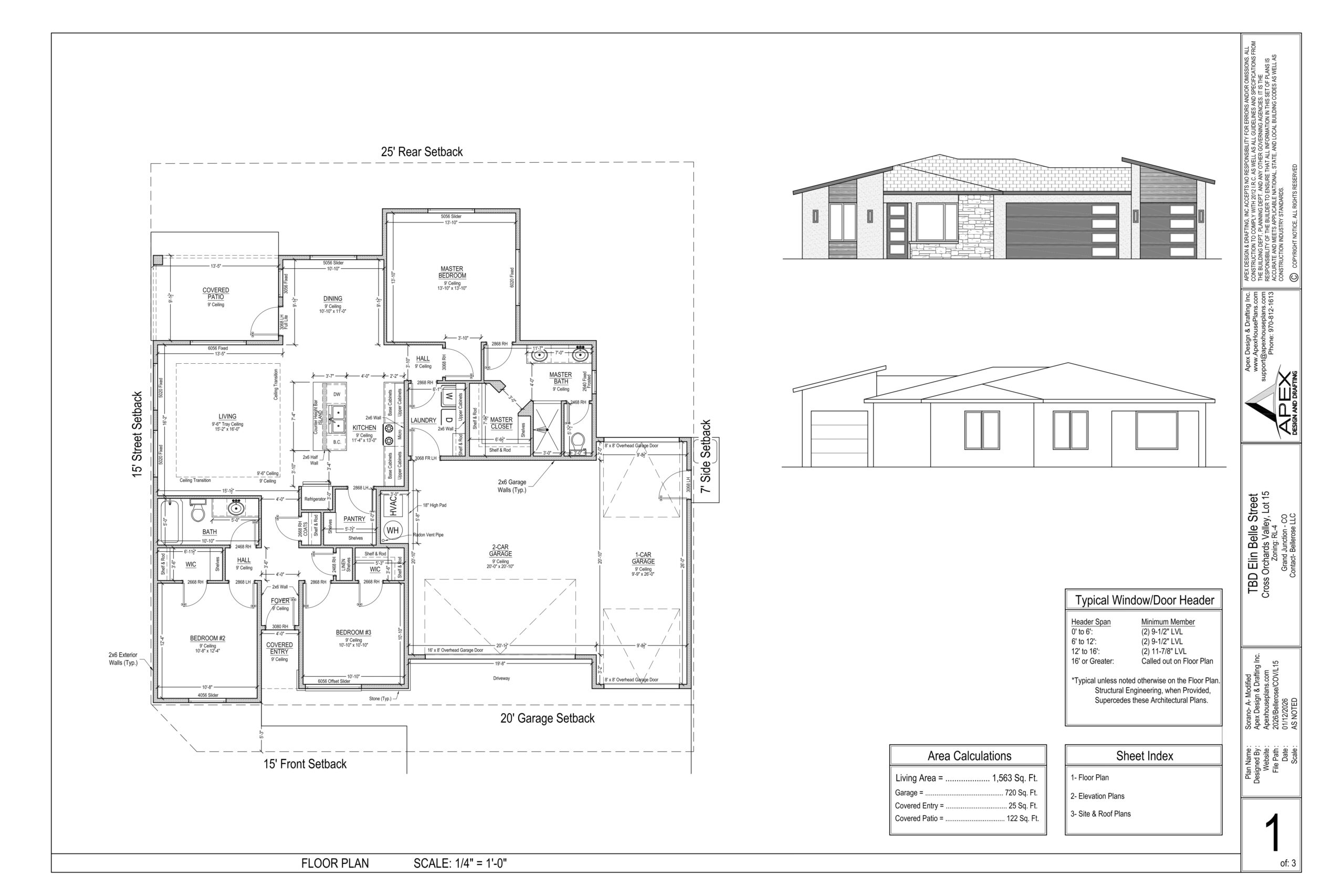 - 3-car garage with optional pull through door at rear of 3rd car (bold)